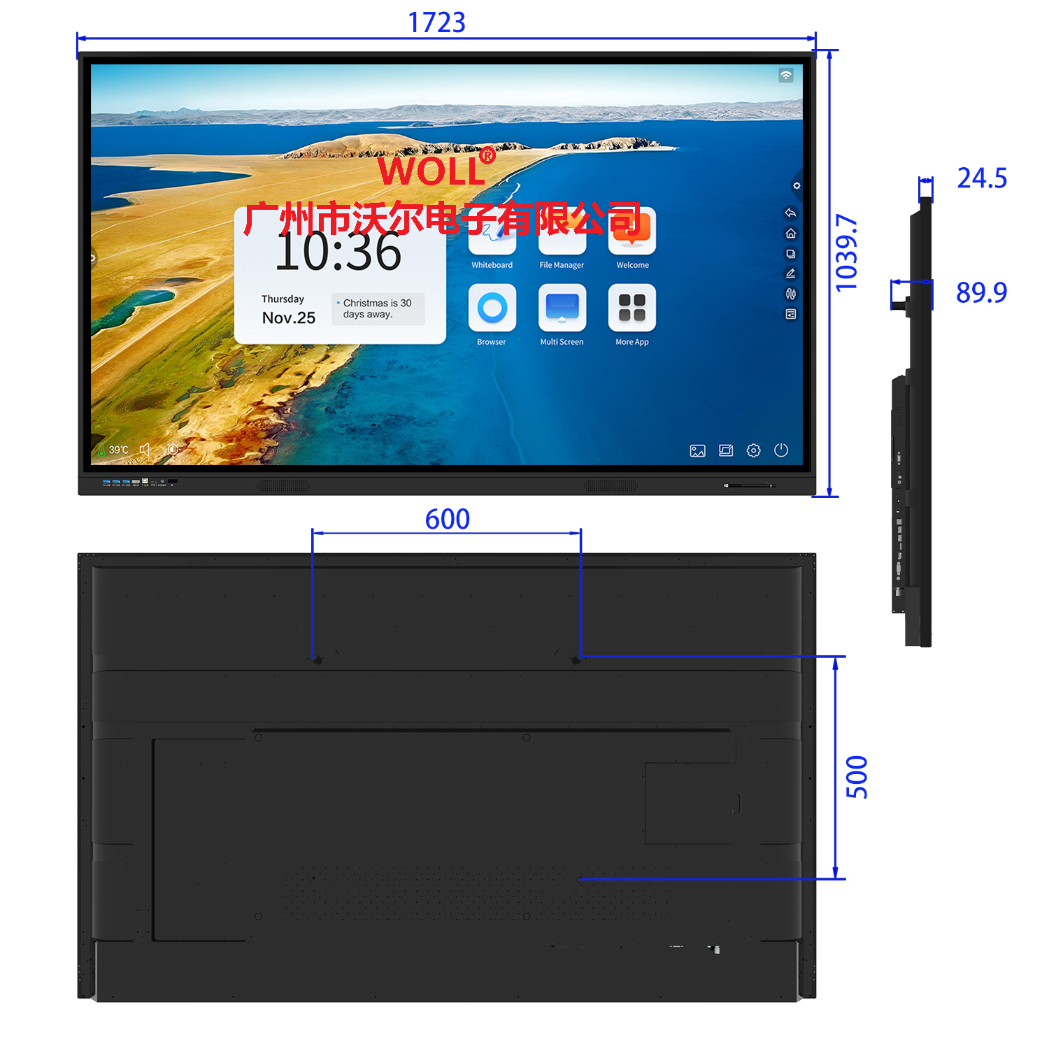 睡眠定时、关机记忆 支持遥控器代替键盘,实现F1~F12按键功能,遥控电视电源开机功能 支持光感识别,实现对不同光亮的环境下,自动调整屏幕亮度功能 支持触摸菜单,实现返回键、菜单操作、任务预览、通道切换、音量调整、快捷电子白板操作等功能 支持在系统主页面点击任一信号源 支持遥控器童锁功能 支持无线wifi,有线LAN 支持前置按键一键开关电脑、电视、一键电脑复位以及主页键功能 支持嵌入式高清摄像头拍照,录像功能(需要选件支持) 前置HDMI、USB2.0、USB3.0、Touch接口,便于用户使用 |