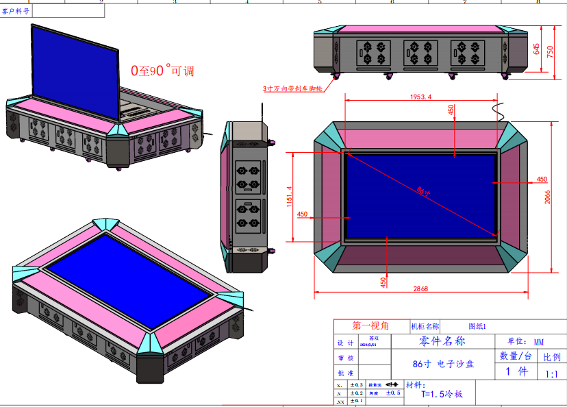 多重保护,短路保护,过载保护,同步偏差超限保护,控制方式为有线手柄/开关/PLC 继 电器/无线遥控器,可选 485 通信,可与其他设备通信,默认点动,可自由切换自动/点动; 支持屏幕升降调节,屏幕后托采用硬度较高金属材质拼接组成,安装于屏幕背面,与 屏幕连接牢靠稳固。可将屏幕升起到 0 至 90 度任意角度,起落过程应当平稳、流畅、无 噪音边框内边与屏幕平齐; 框架采用模块化设计, 内部主框架大于 1.5mm 冷轧钢板,采用防静电喷塑。前后门 板大于 1.0mm 冷轧钢板,电子沙盘底部设计空间大,可容纳放置电动推杆起落装置,图 形工作站,视频工作站。同时四周有可拆卸金属门,门上均有散气孔,可实现空气对流通畅, 使设备安全性得到有效保证; 支持按键操作及遥控器操作:按键搭配不锈钢金属 22mm 防水按键,独立灯带开关按 钮,升起按钮,降落按钮,备用按钮,也可以根据客户需求定制按钮。 |